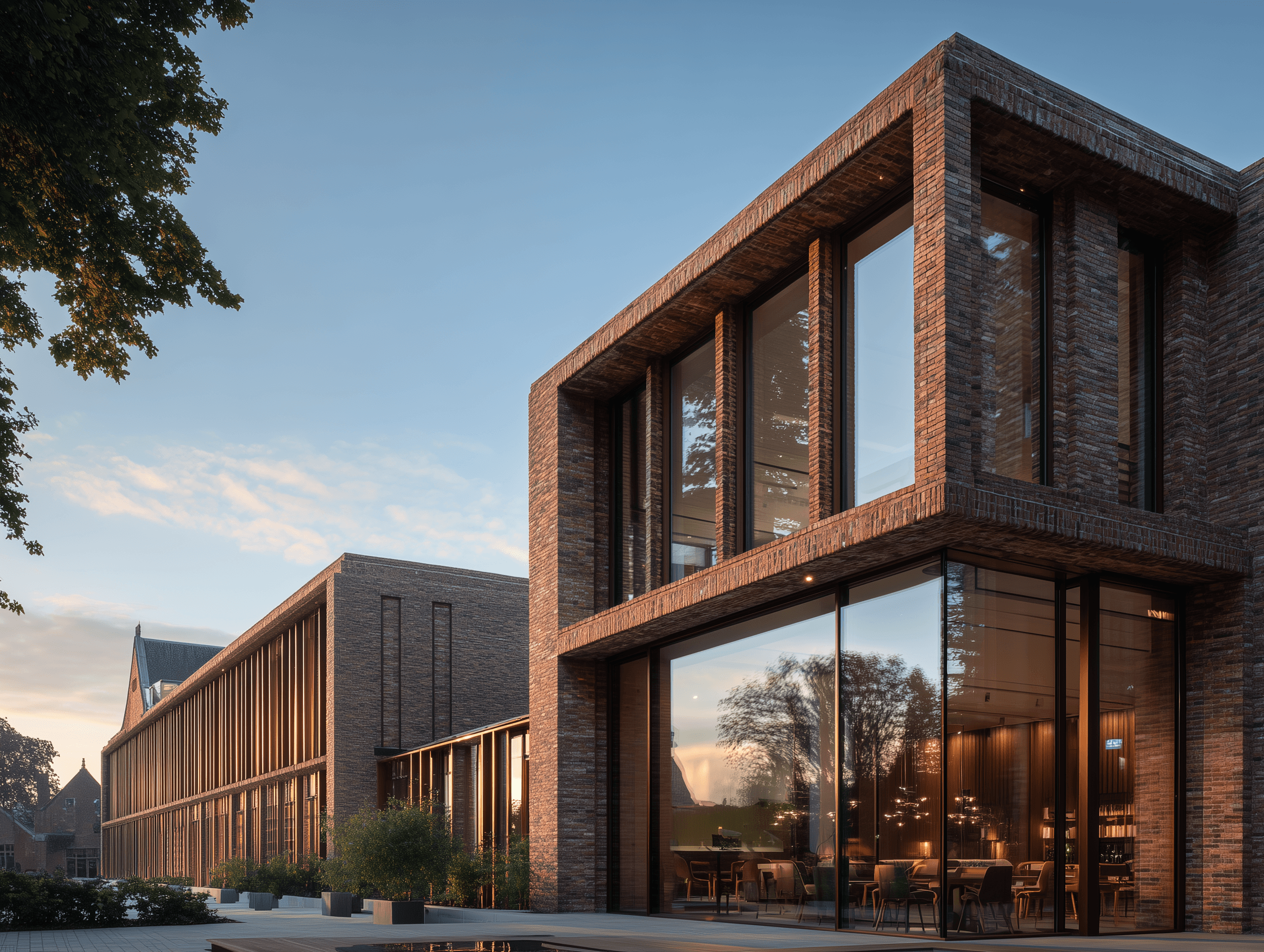 Brick detailing creates visual continuity with surrounding historic buildings while clearly expressing contemporary construction. The material performs exceptionally well in Rotterdam's maritime climate, requiring minimal maintenance and aging beautifully.